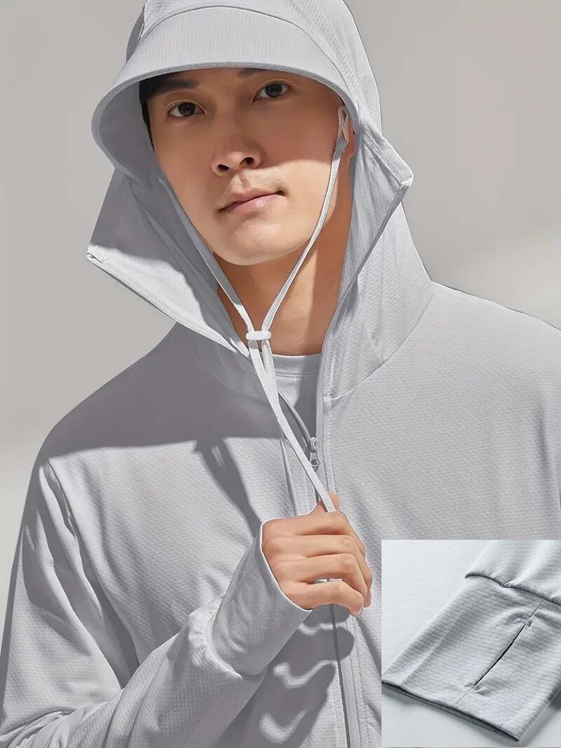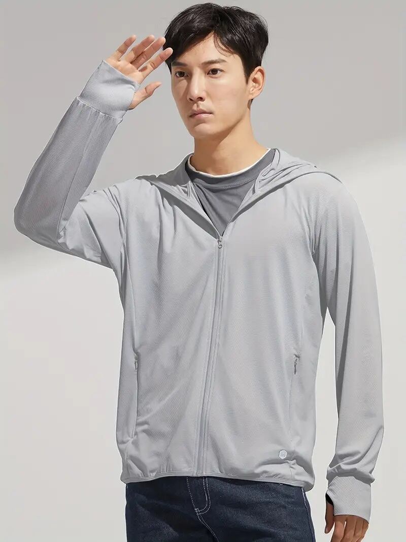 メンズ軽量UVカットフーディー - UPF50+サンシールド、速乾性メッシュ生地、通気性&吸湿発散性、アウトドアスポーツ・ヨガ・ランニング・カジュアルウェア用ジップアップフード付きジャケット