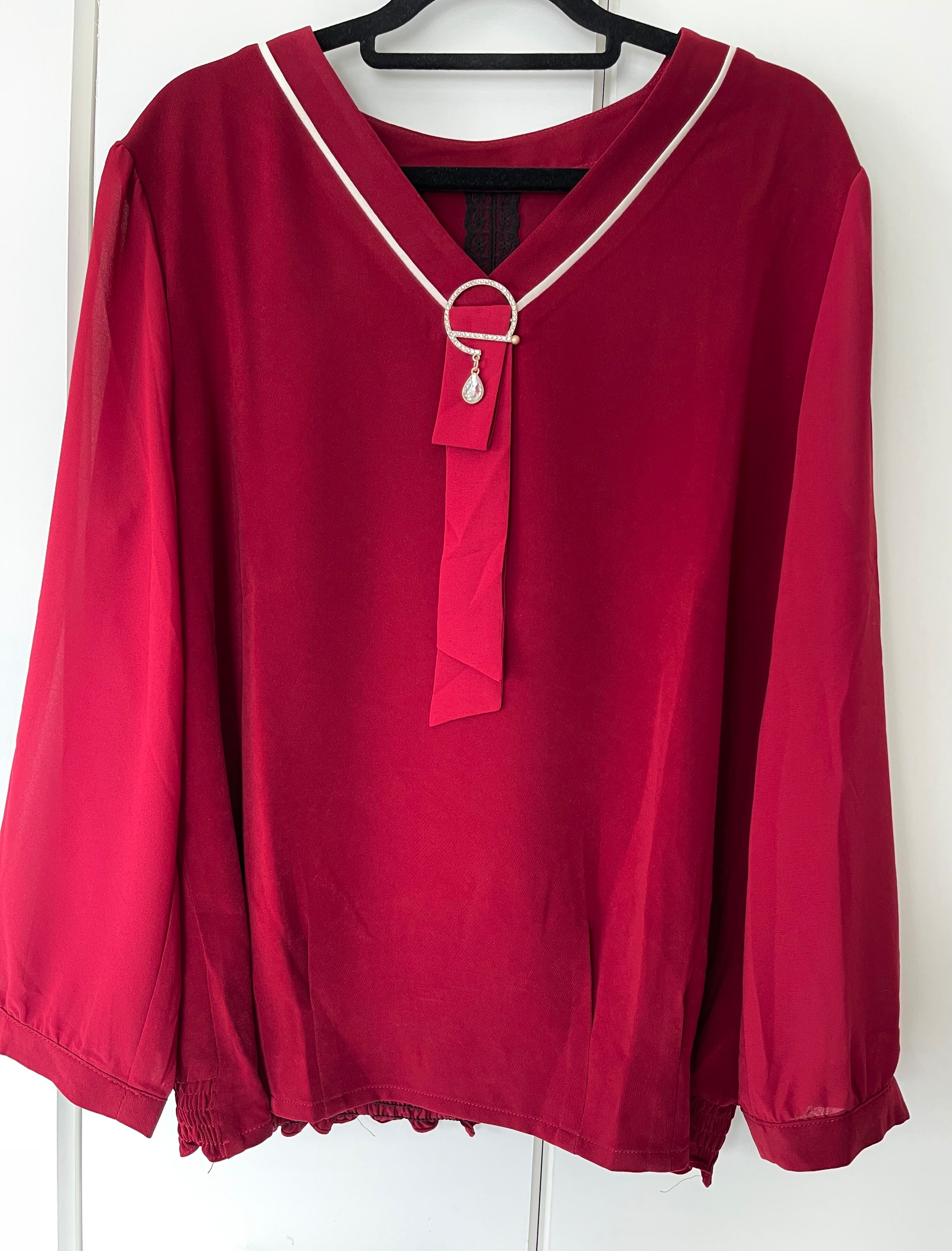 緩やかなV字ネックに白いラインでインパクトをつけています