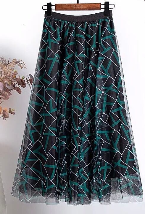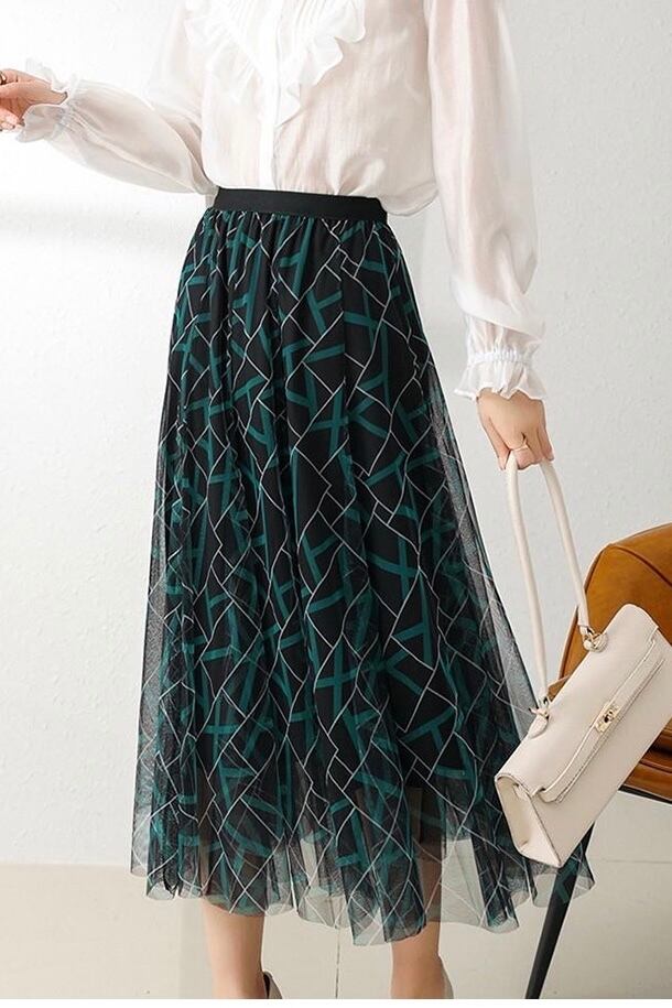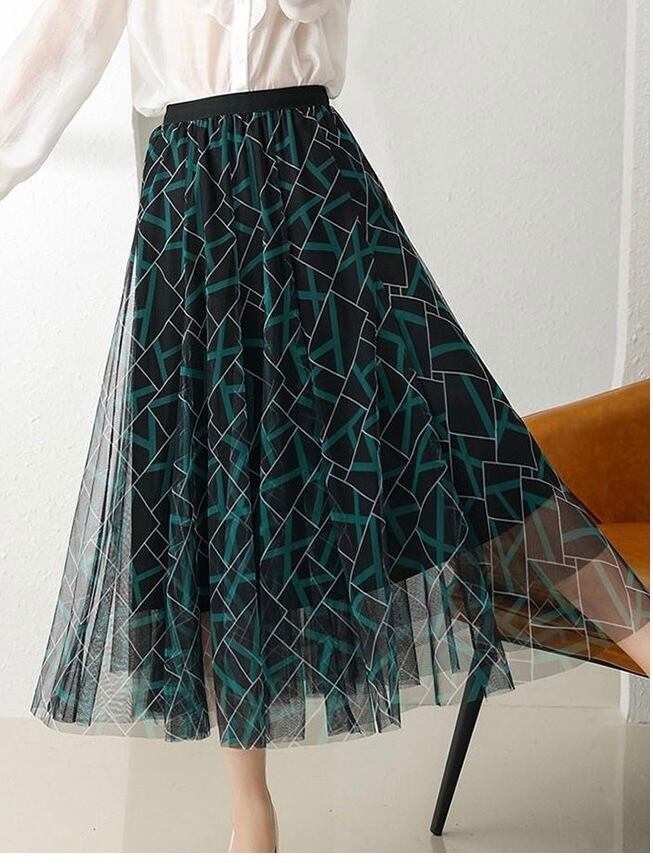 ダブルシフォンスカート(グリーン) エレガント 個性的 キレイ目 魅力的
