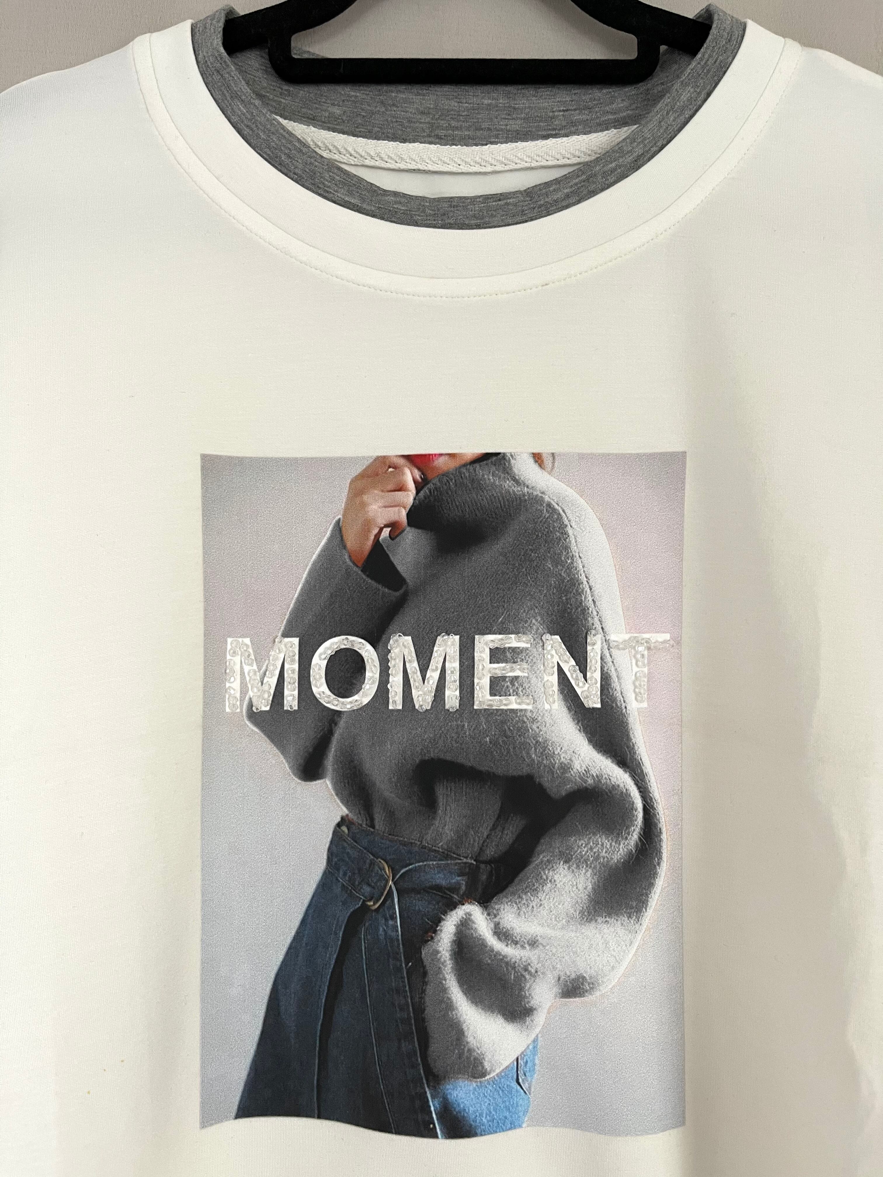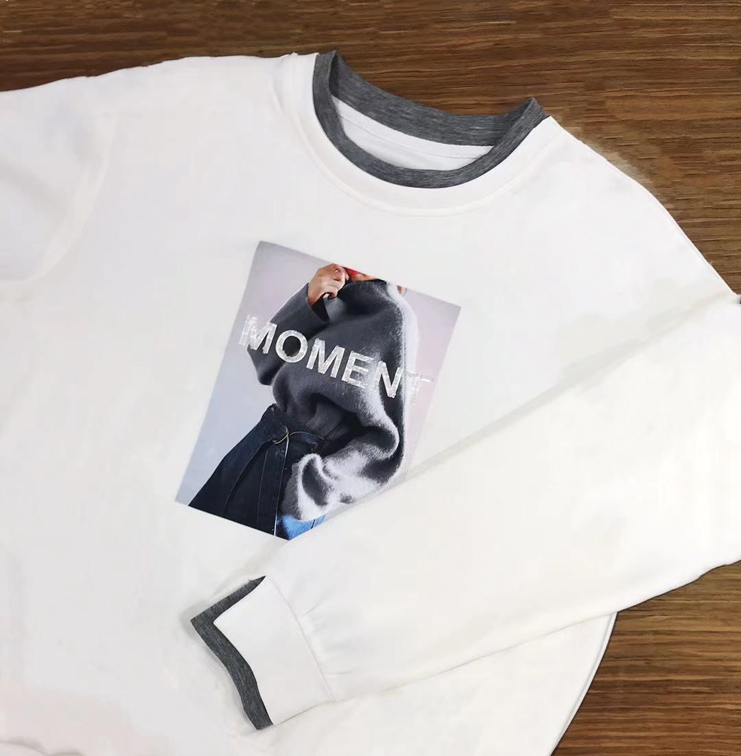 デザイントレーナー(白) 重ね着風 定番 しわになりにくい カジュアル 伸縮性 もっちり ビジュー