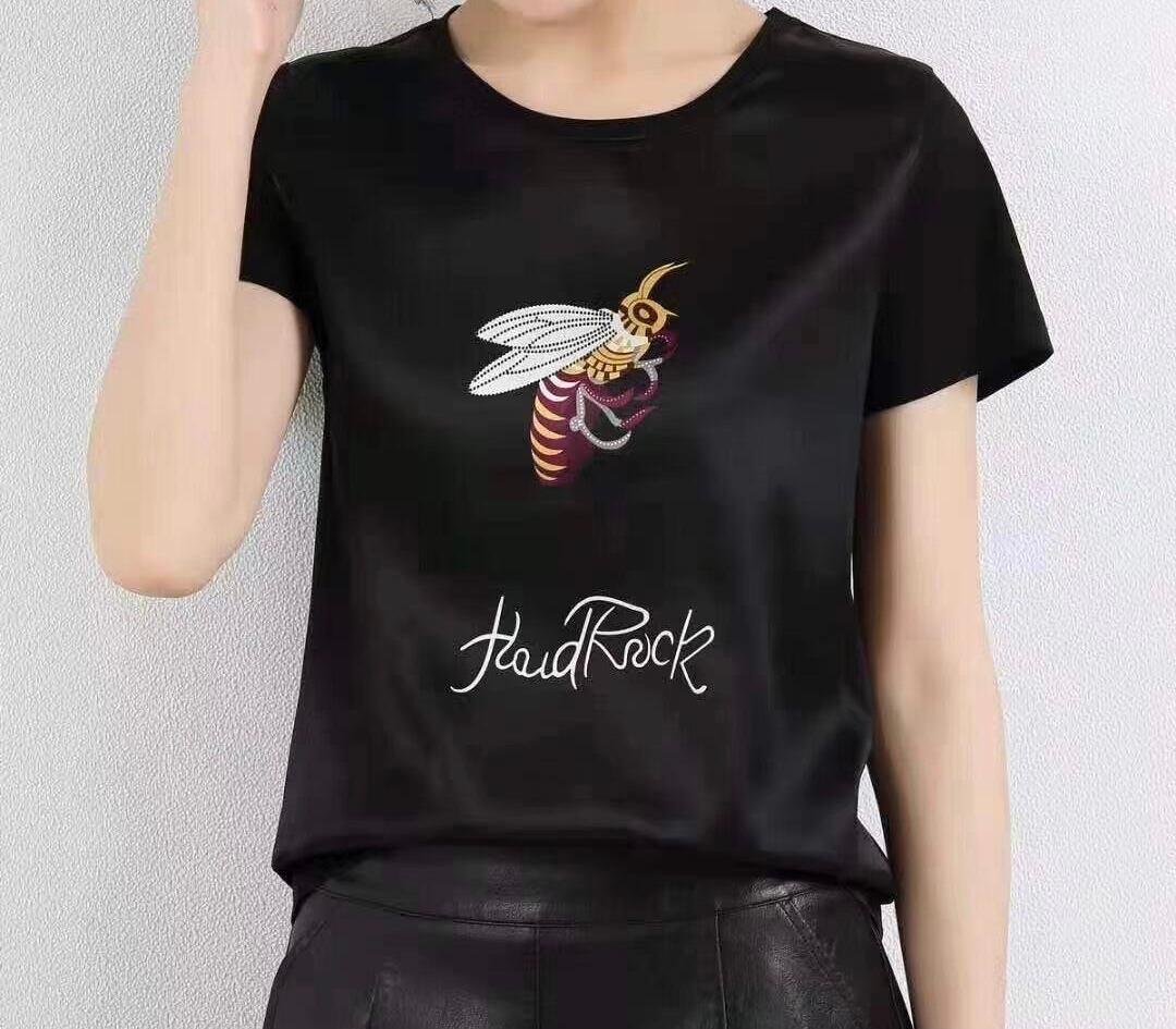 シルクタッチ大人トップス(ブラック・蜂) 大人コーデ カジュアルコーデ 夏 デザイン