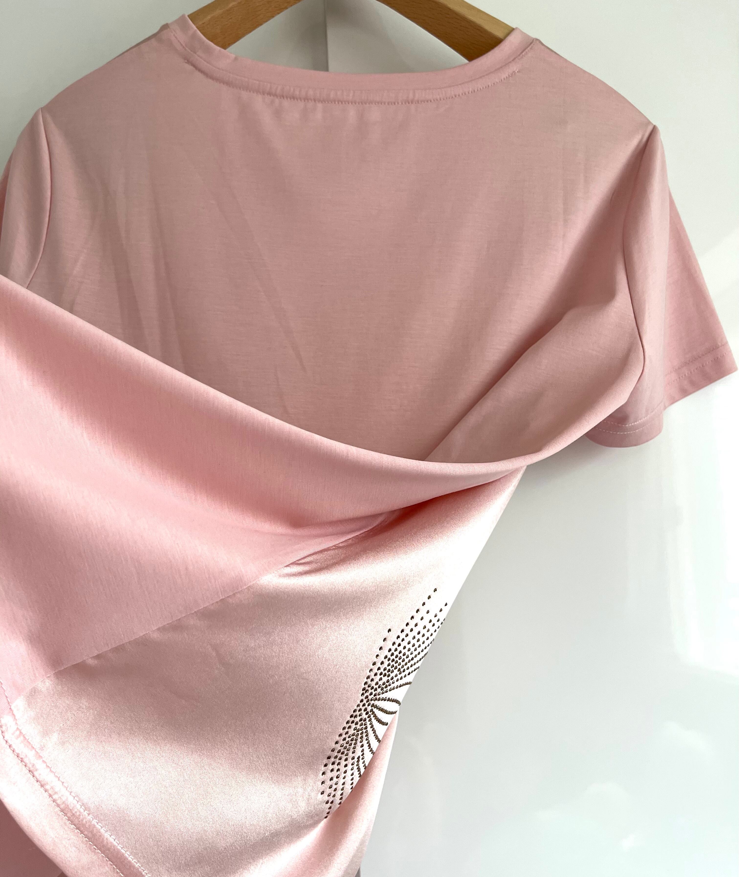 シルクタッチ大人トップス(薄いピンク) 大人コーデ カジュアルコーデ 夏 デザイン エレガント