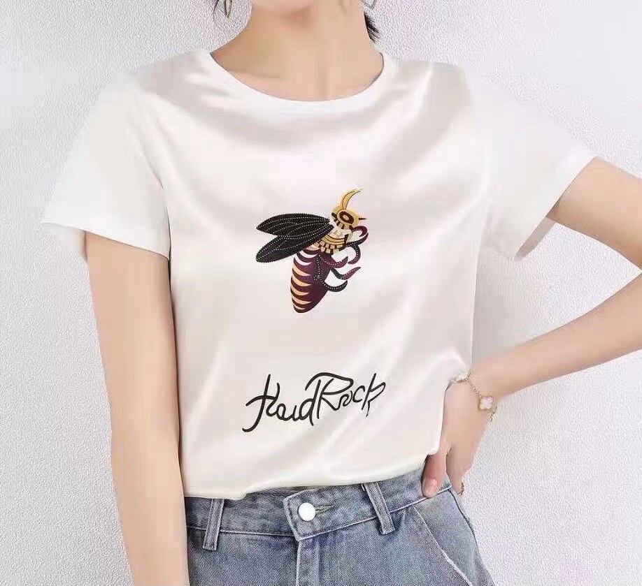 シルクタッチ大人トップス(ホワイト・蜂) 大人コーデ カジュアルコーデ 夏 デザイン