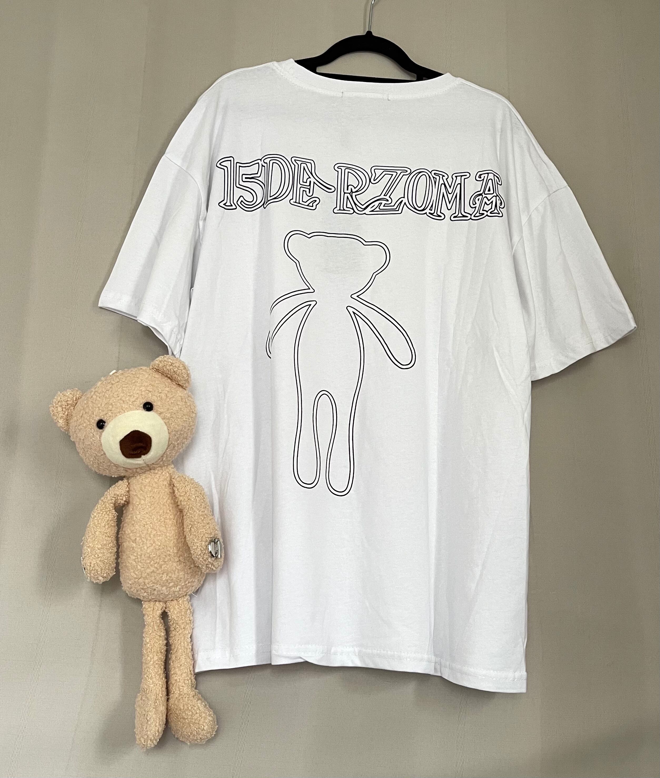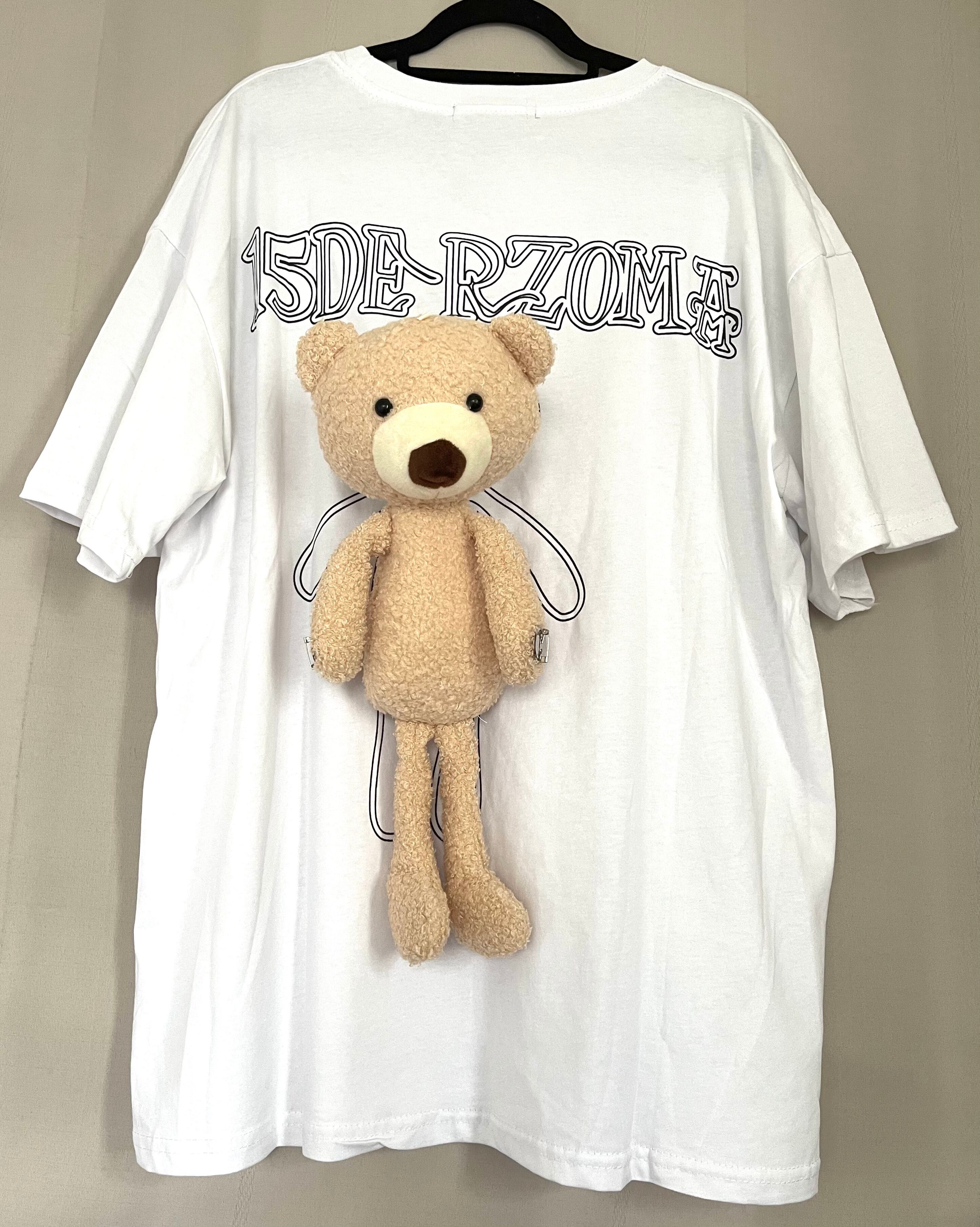 ♡圧倒的な個性♡ぬいぐるみTシャツ(ビッグ)(白) カジュアルコーデ 個性的 可愛い 目を惹く ぬいぐるみ 夏