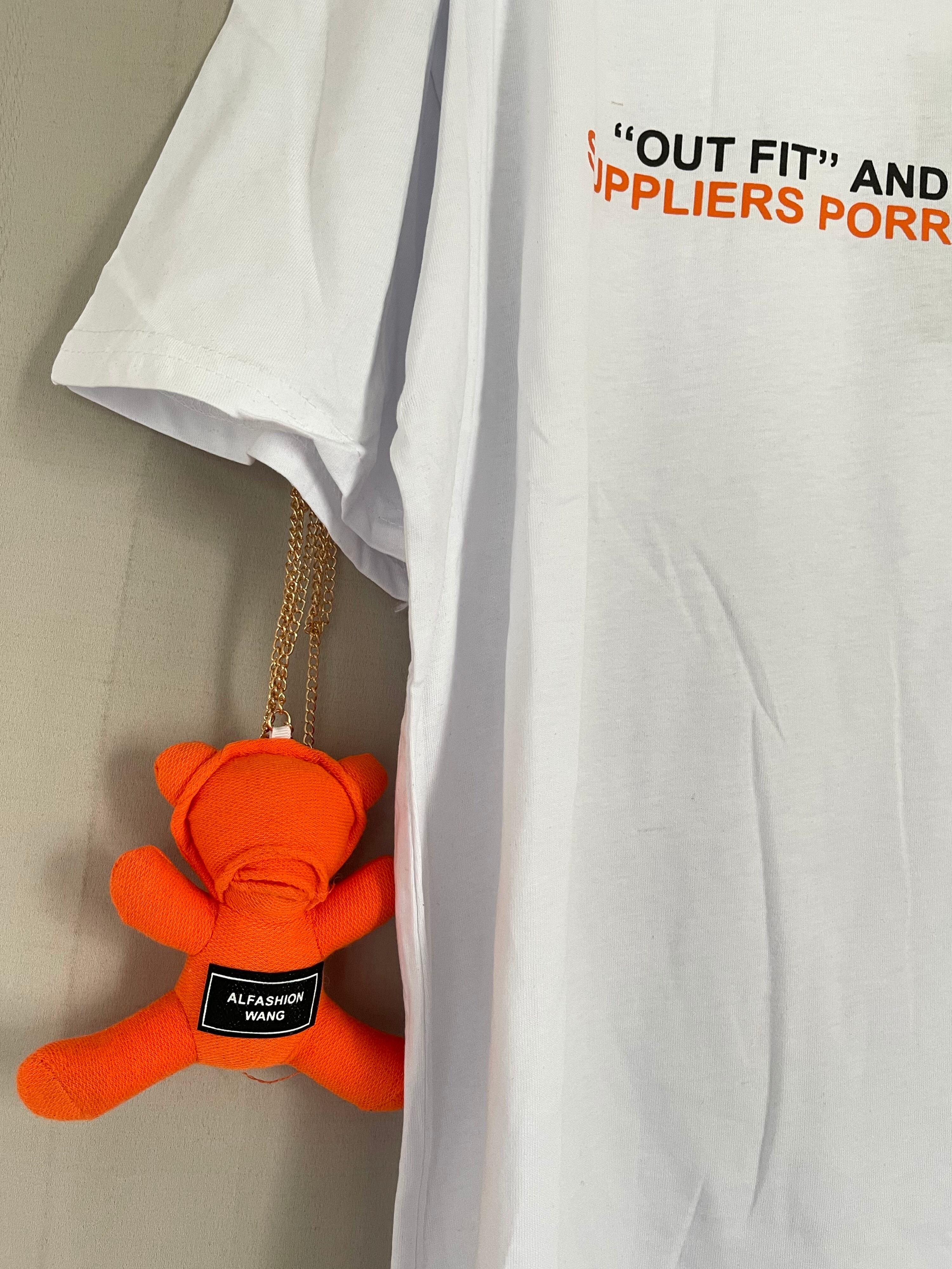 ☆彡圧倒的な個性☆彡ぬいぐるみTシャツ(チェーン)(白) カジュアルコーデ 個性的 可愛い 目を惹く ぬいぐるみ 夏
