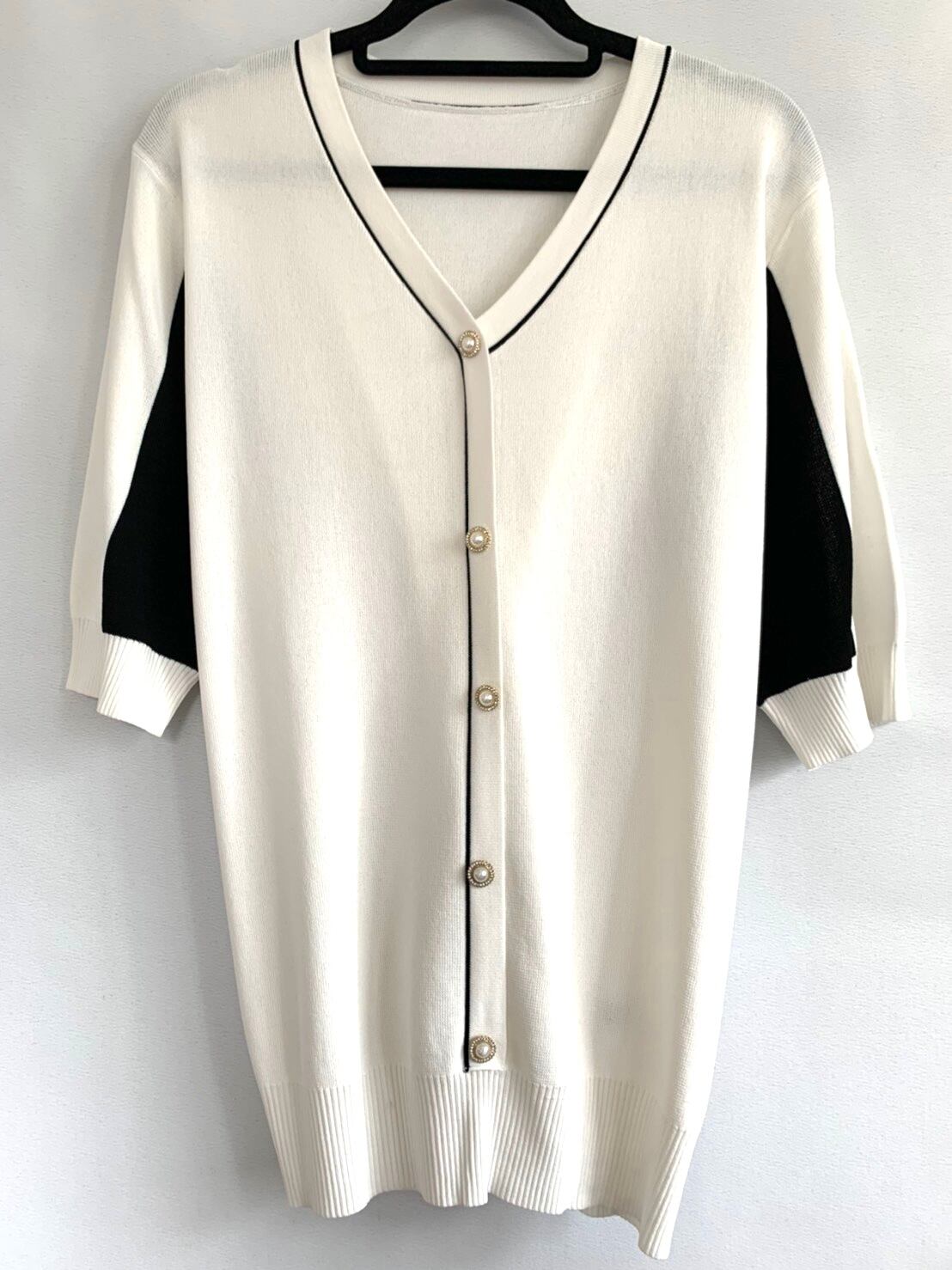 上質ニットの身頃におしゃれな飾りボタンがついています!