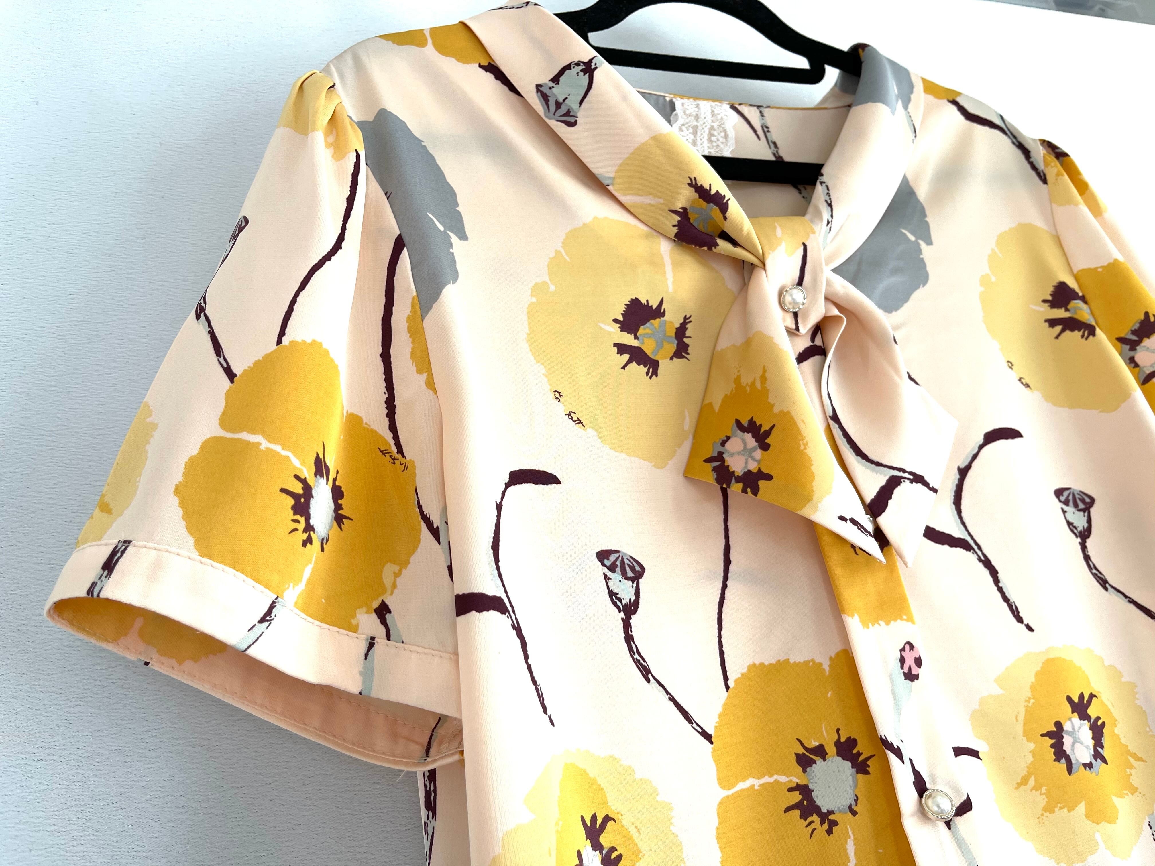 モダン花柄トップス 半袖 可愛い デートコーデ 通勤通学 甘コーデ モダンコーデ