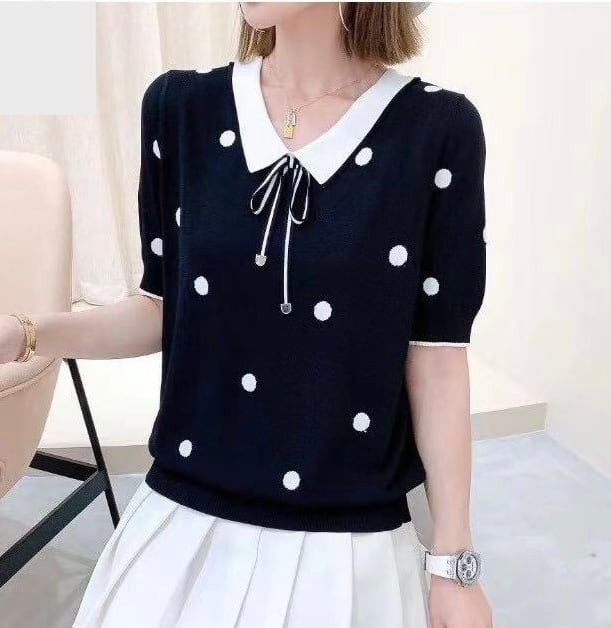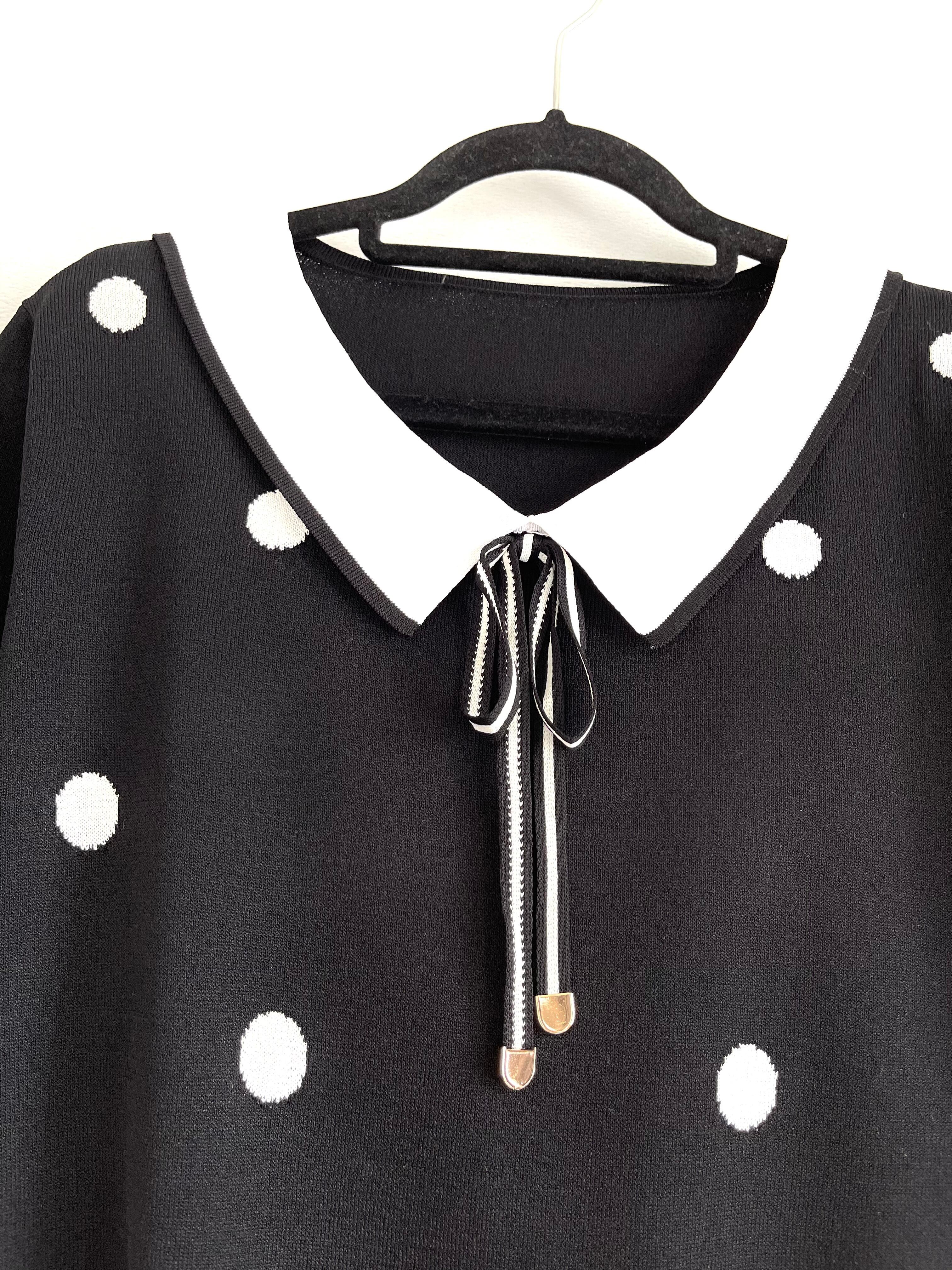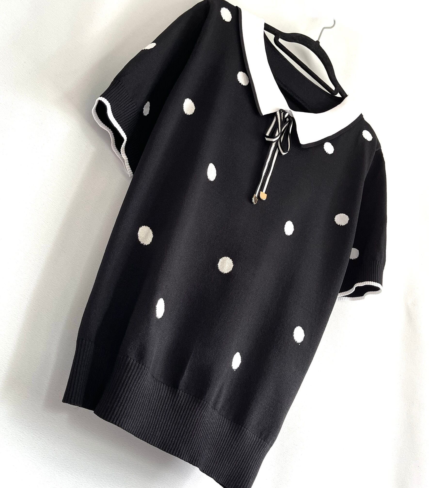 ドットデザインニット 可愛いコーデ リボン 水玉好き 水玉模様 ドット柄コーデ