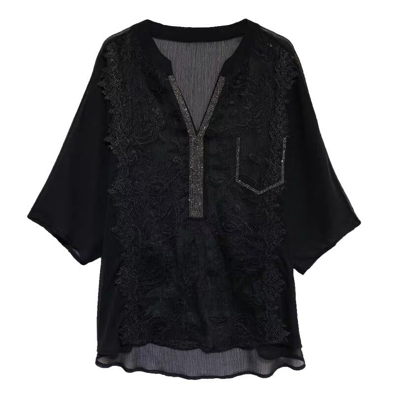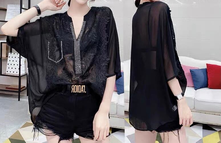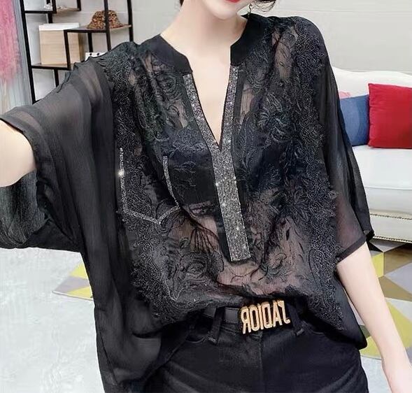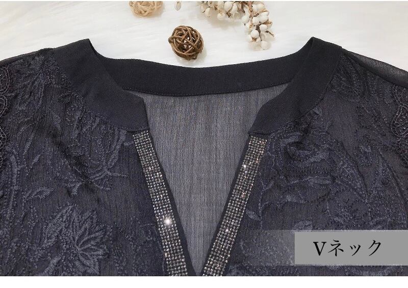 ドルマンス刺繡ビジューV領シャツ シースルーゴージャス エロ可愛い シースルー カッコいいコーデ