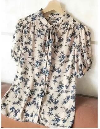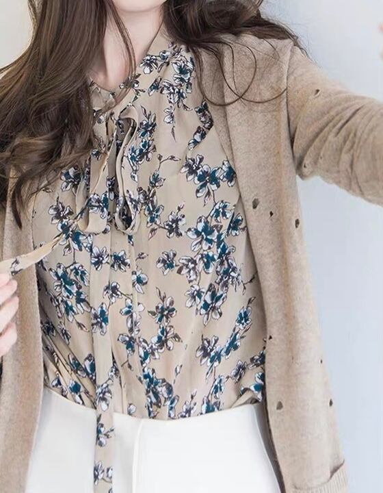 花柄リボントップス 半袖 お洒落 デートコーデ 通勤通学 お姉さんコーデ